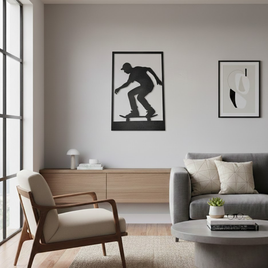 Cadre Mural Bois Skateur