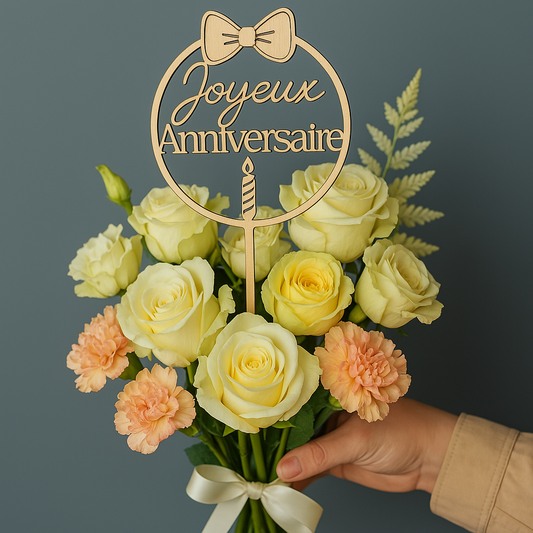 Qu’il s’agisse d’un anniversaire tout court, d’un anniversaire de mariage, d’une fête, de la Saint Valentin, fête des mères ou des grands-mères, fiançailles, etc, l’occasion d'offrir des fleurs n’est pas rare ! Souvent, on agrémente le bouquet qu’on offre d’une petite carte. Aujourd’hui, optez plutôt pour une pique en bois tendance à piquer dans votre bouquet !