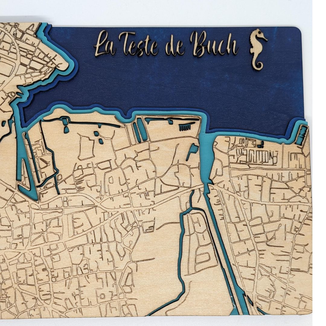 Carte de La Teste de Buch en bois – Une création artisanale multicouche