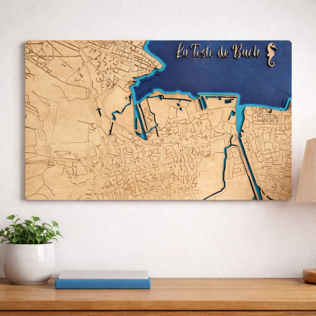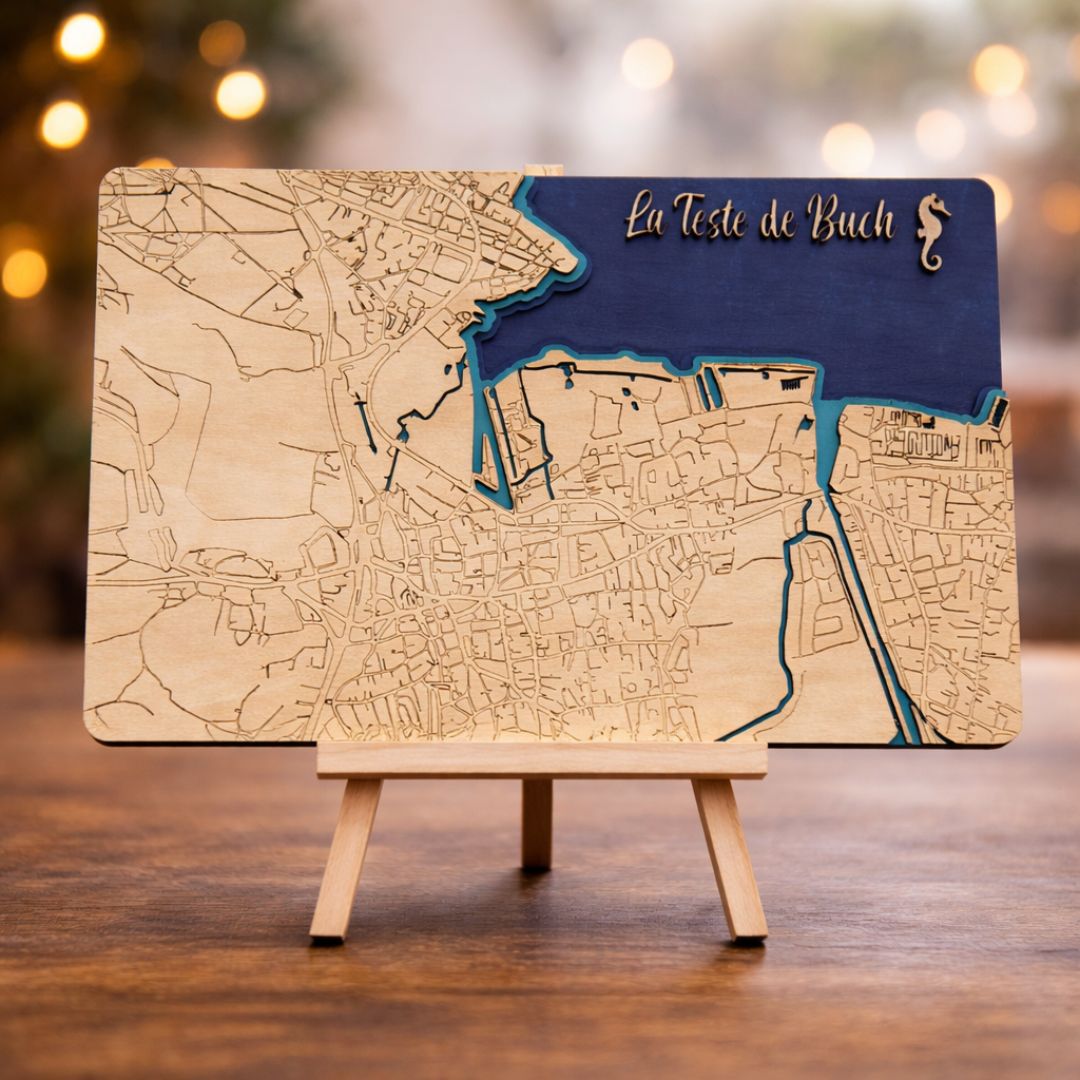 Cette carte de La Teste-de-Buch en bois est parfaite pour :
